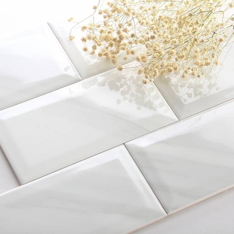 Gạch thẻ màu inkjet trắng nâu bóng vát 100*200mm