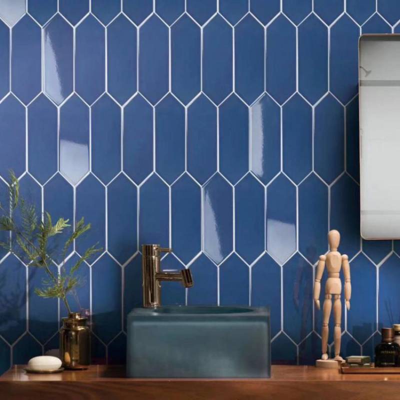 Gạch thẻ ốp tường mũi nhọn 76 * 228mm màu xanh lam M76228J