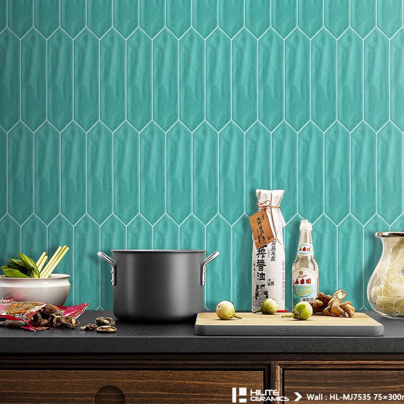 Gạch thẻ ốp tường trang trí màu xanh lá đậm 75x300mm DS-M75306J-3