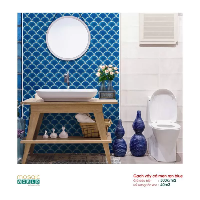 Gạch vảy cá men rạn blue