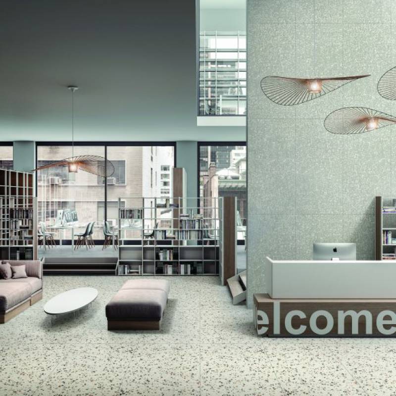 Gạch xương đá porcelain, thiết kế vân đá mài terrazzo cao cấp nhập khẩu với các lựa chọn kích thước 30x60, 60x60, 60x120cm. Với màu sắc tươi tắn, thiết kế sản phẩm tinh tế, bề mặt sắc nét, có chiều sâu và chống thấm tốt, dễ vệ sinh.