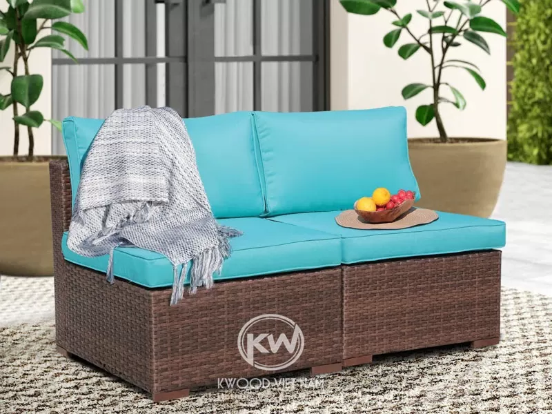 Ghế sofa gỗ ngoài trời màu xám nhạt tự nhiên - SF410 tại Kwood Việt Nam được làm từ gỗ Keo tự nhiên cùng vải sợi tổng hợp phù hợp cho không gian ngoài trời.
