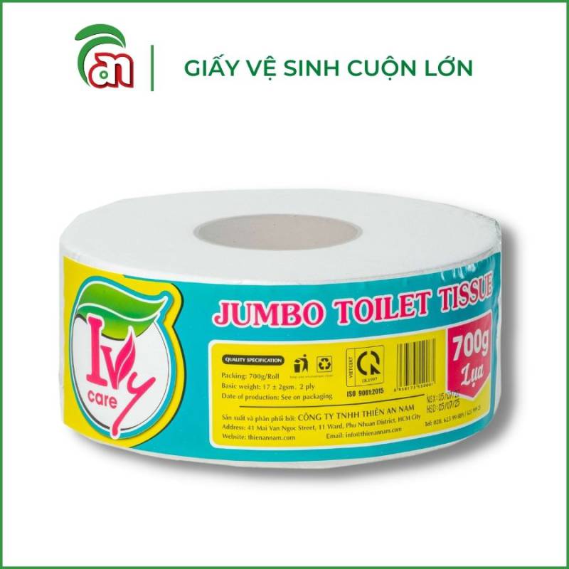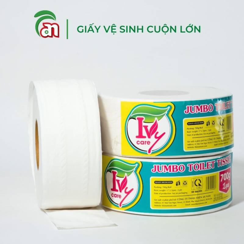Cuộn 700g là kích thước cuộn lớn phổ biến thường xuyên được lựa chọn. Cuộn Jumbo 700g IVY cũng là sản phẩm được bán chạy Tại Thiên An Nam, nhờ vào giá cả hợp lý, chất lượng phù hợp. Tối ưu chi phí giấy cho các tòa nhà, khu công nghiệp, cơ sở dịch vụ, cơ sở lưu trú tầm trung và bình dân.