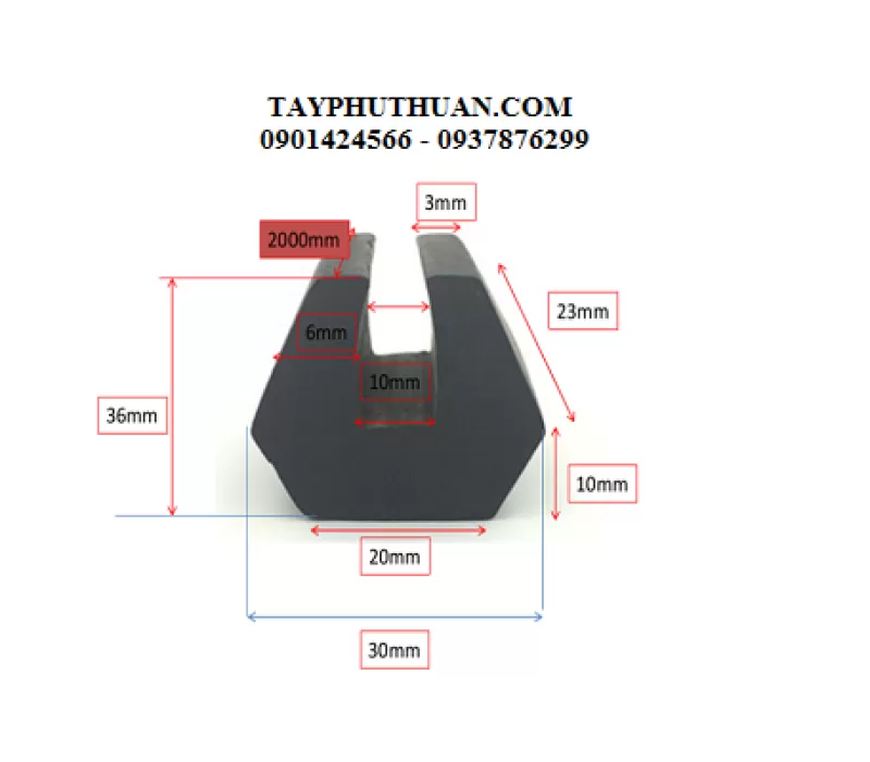 Gioang cao su chữ U dày 3mm
