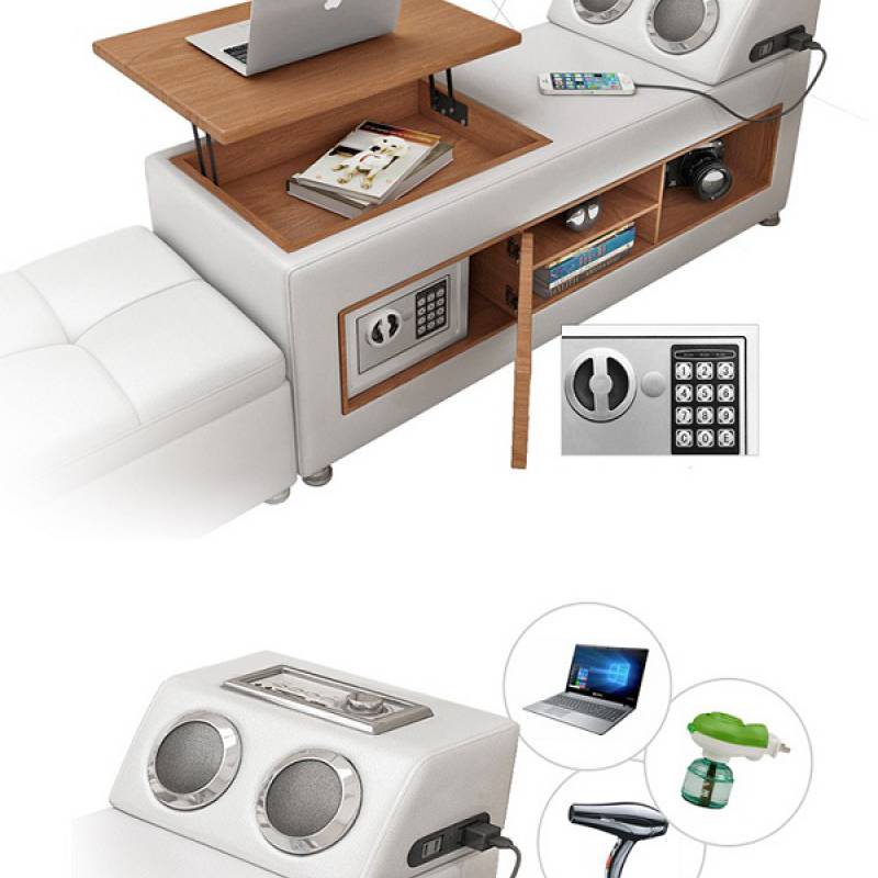 Chỉ cần nhìn qua thôi là bạn đã thấy được những gì mà chiếc giường này đem lại cho con người, ngoài loa nghe nhạc các bên giường đều có những ngăn kéo hộc tủ đựng đồ dùng gọn gàng đem lại tính thẩm mỹ cao. Ngoài ra, giường còn tích hợp bàn làm việc, ổ cắm sạc pin, đèn,… vô cùng tiện nghi.