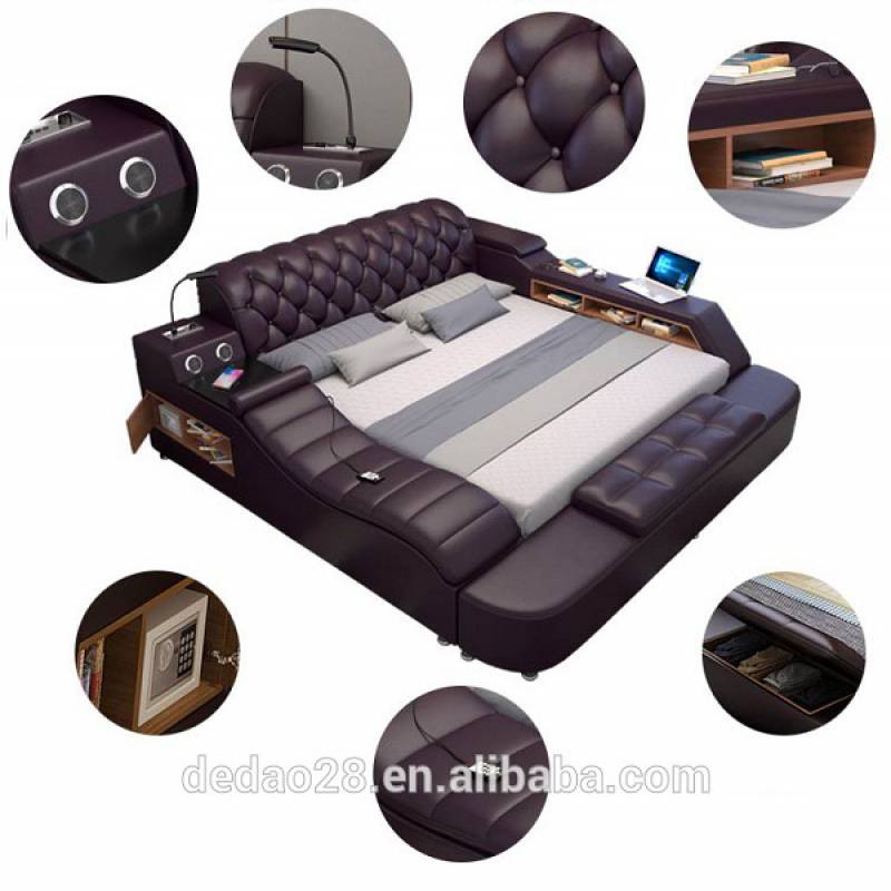 Chỉ cần nhìn qua thôi là bạn đã thấy được những gì mà chiếc giường này đem lại cho con người, ngoài loa nghe nhạc, ghế để massage ra thì các bên giường đều có những ngăn kéo hộc tủ đựng đồ dùng gọn gàng đem lại tính thẩm mỹ cao. Ngoài ra, giường còn tích hợp bàn làm việc, ổ cắm sạc pin, đèn,… vô cùng tiện nghi.