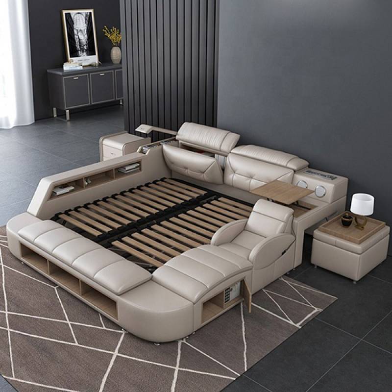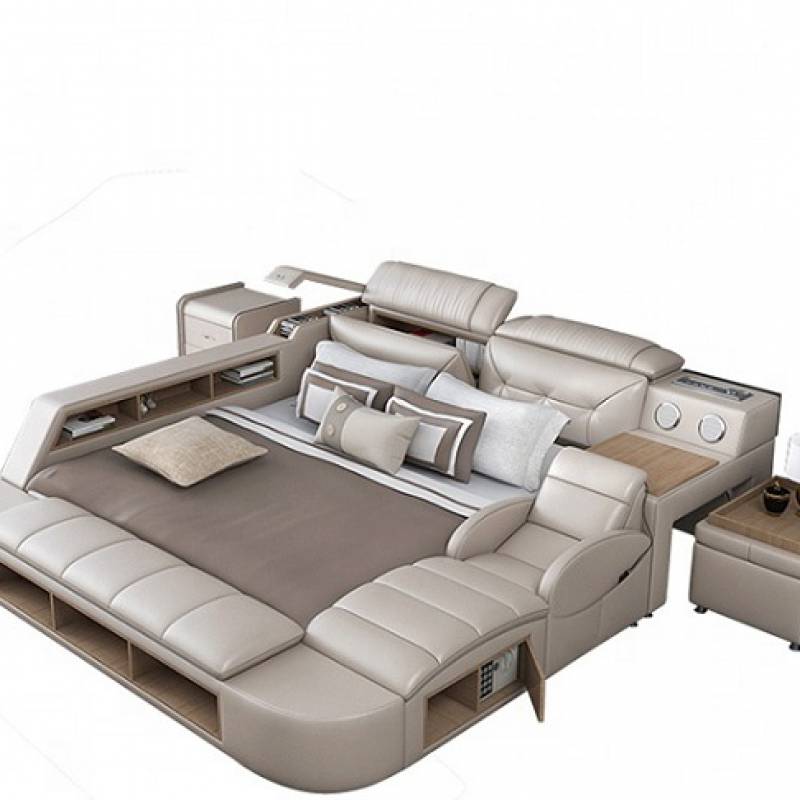 Chỉ cần nhìn qua thôi là bạn đã thấy được những gì mà chiếc giường này đem lại cho con người, ngoài loa nghe nhạc, ghế để massage ra thì các bên giường đều có những ngăn kéo/ hộc tủ đựng đồ dùng gọn gàng đem lại tính thẩm mỹ cao. Ngoài ra, Giường ngủ thông minh đa chức năng MLA30 còn tích hợp bàn làm việc, ổ cắm sạc pin, đèn,… vô cùng tiện nghi.