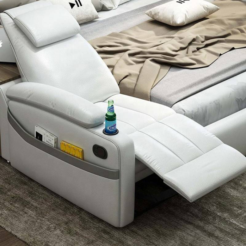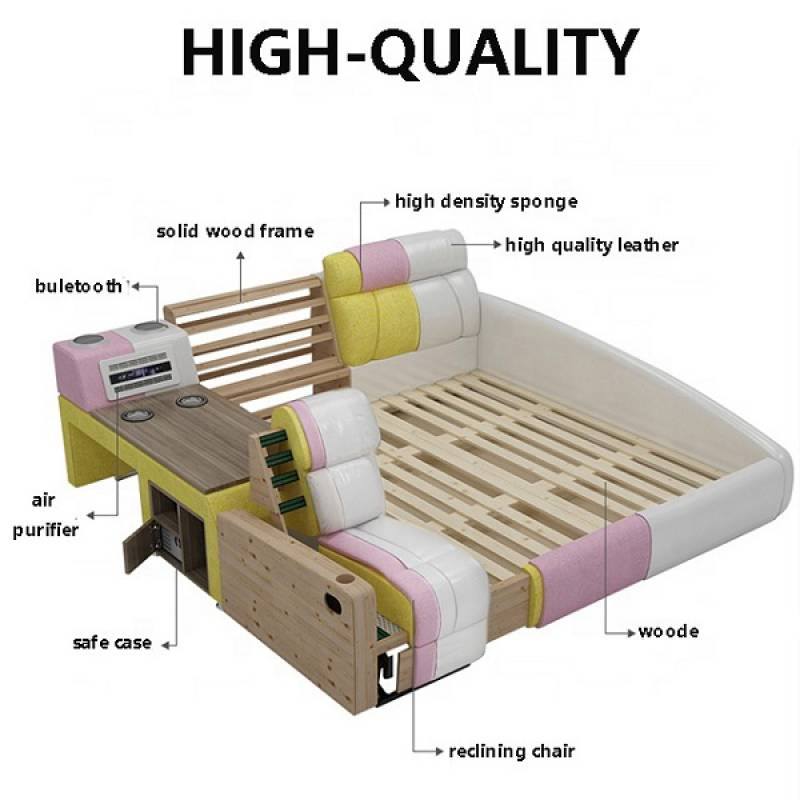 Chỉ cần nhìn qua thôi là bạn đã thấy được những gì mà chiếc giường này đem lại cho con người, ngoài loa nghe nhạc, ghế để massage ra thì các bên giường đều có những ngăn kéo hộc tủ đựng đồ dùng gọn gàng đem lại tính thẩm mỹ cao. Đặc biệt còn có thêm tính năng máy lọc không khí cho bạn một không gian trong lành thoải mái nhất.