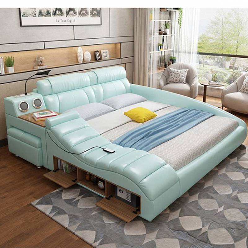 Chỉ cần nhìn qua thôi là bạn đã thấy được những gì mà chiếc giường này đem lại cho con người, ngoài loa nghe nhạc, ghế để massage ra thì các bên giường đều có những ngăn kéo hộc tủ đựng đồ dùng gọn gàng đem lại tính thẩm mỹ cao. Ngoài ra, Giường ngủ thông minh đa chức năng MLA28 De Dao còn tích hợp bàn làm việc, ổ cắm sạc pin, đèn,… vô cùng tiện nghi.