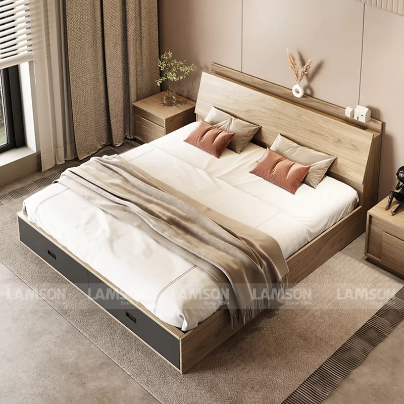 Giường Samson 160S (Nệm 1m6 x 2m) – với thiết kế & sản xuất được thực hiện hoàn toàn bởi Nội thất Lam Sơn.