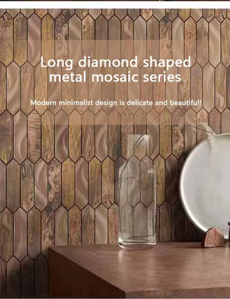 Long Strip Diamond Metal Mosaic, Suitable for Interior Walls Background Walls Hotels Decorative Areas