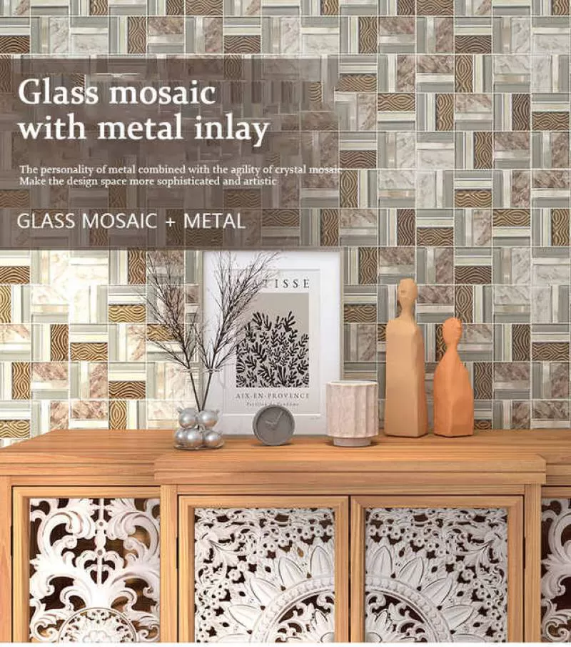 Custom New Design Decoration Electroplated Glass Mix Metal Backsplash Mosaic Tile for Home Decoration