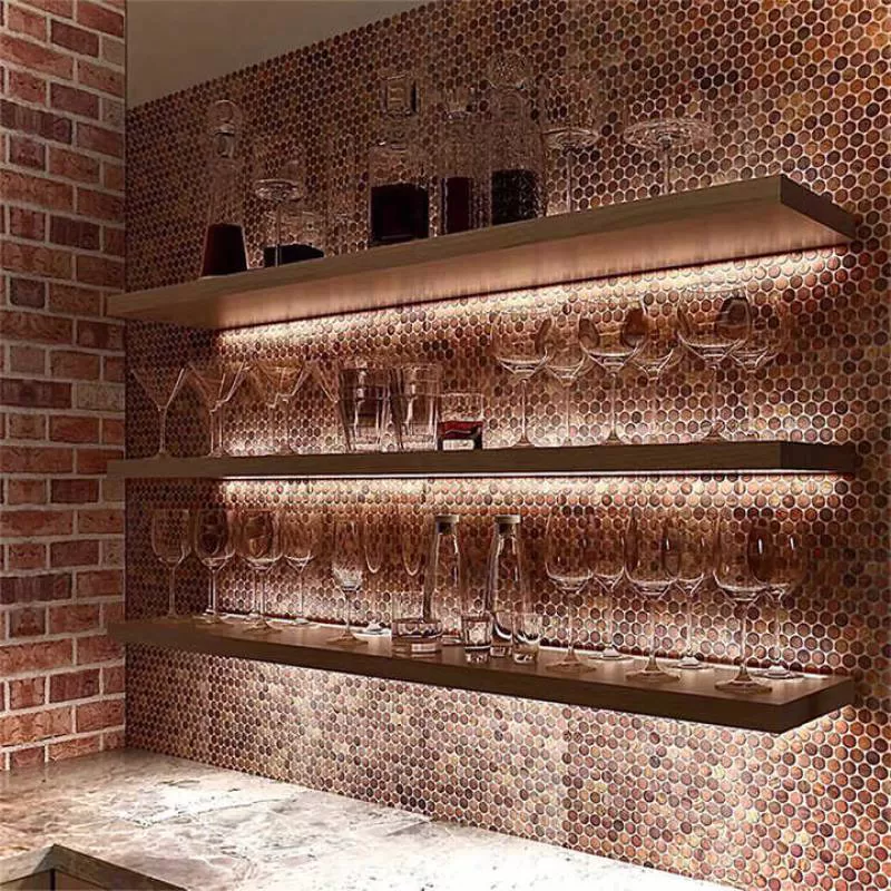 Copper Mosaic Mixed Stainless Steel Tiles European Style Background Brushed Round Mosaic Tiles