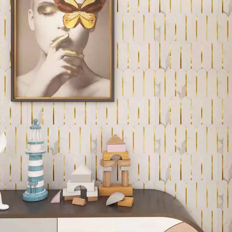 Mixed Glass Mosaic Natural Marble Tiles Parquet Style for Bathroom Kitchen Wall Decoration Graphic Design