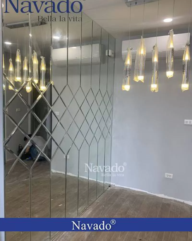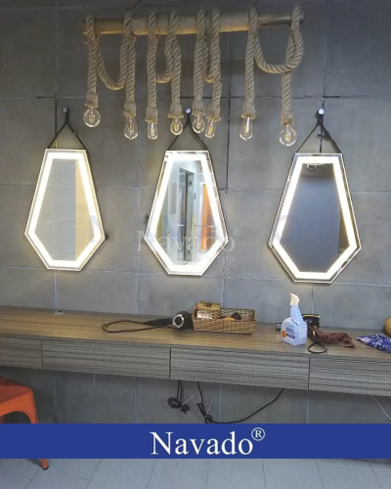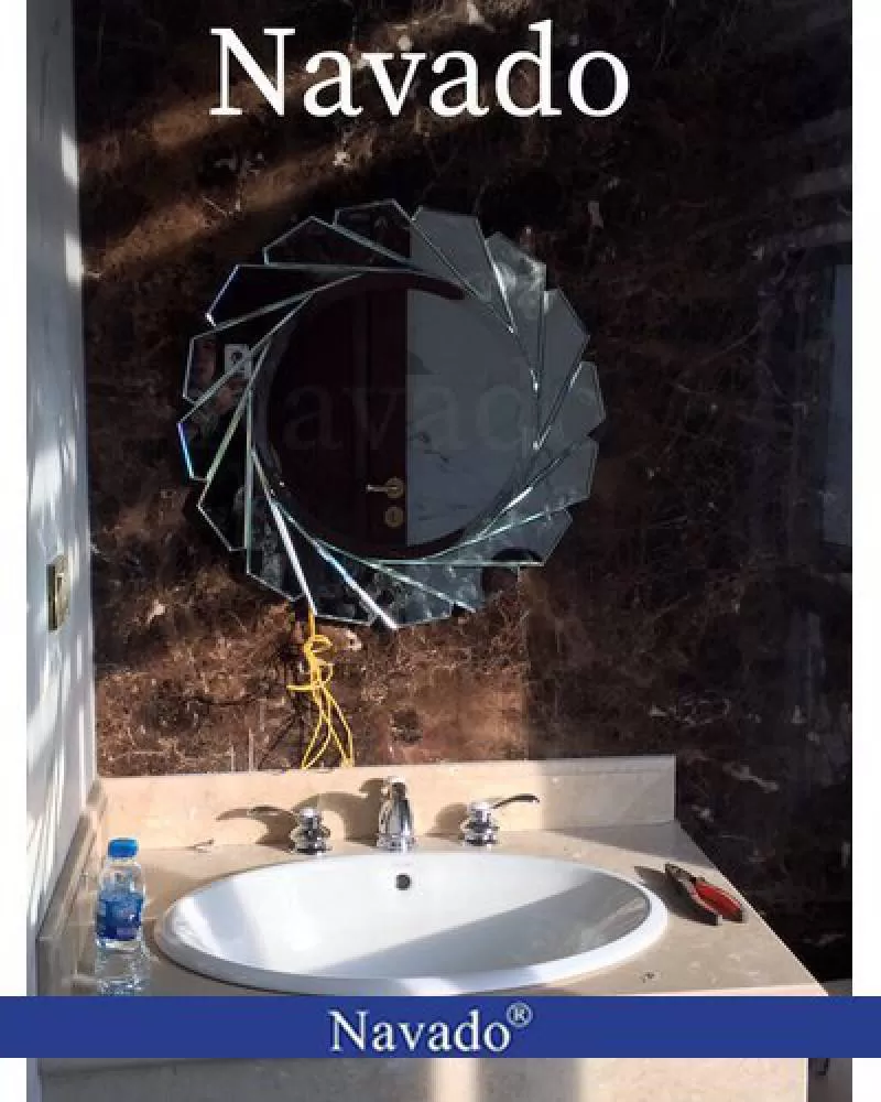 Gương cắt phòng tắm bàn đá lavabo
