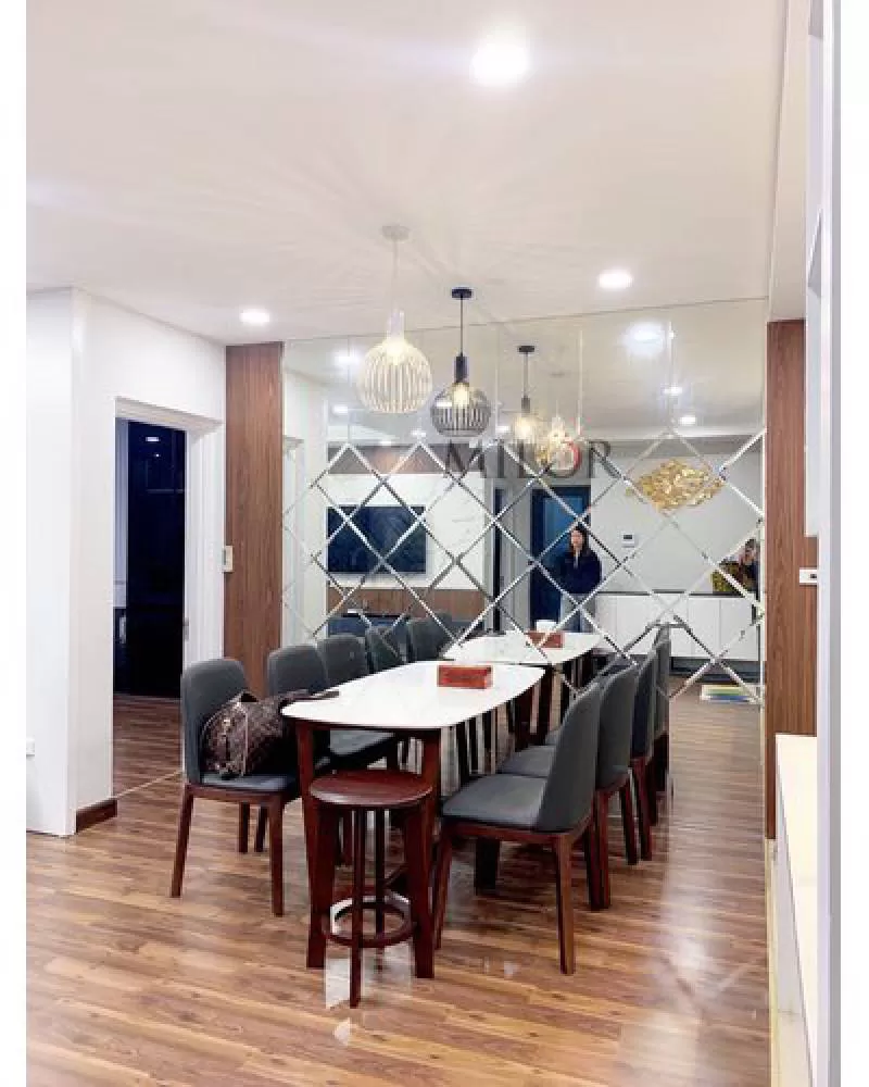 Gương ghép trang trí decor đẹp, gương ghép tường phòng khách hiện đại, gương dán tường phòng ăn đẹp,Gương trang trí nghệ thuật nhập khẩu bỉ cao cấp Milor