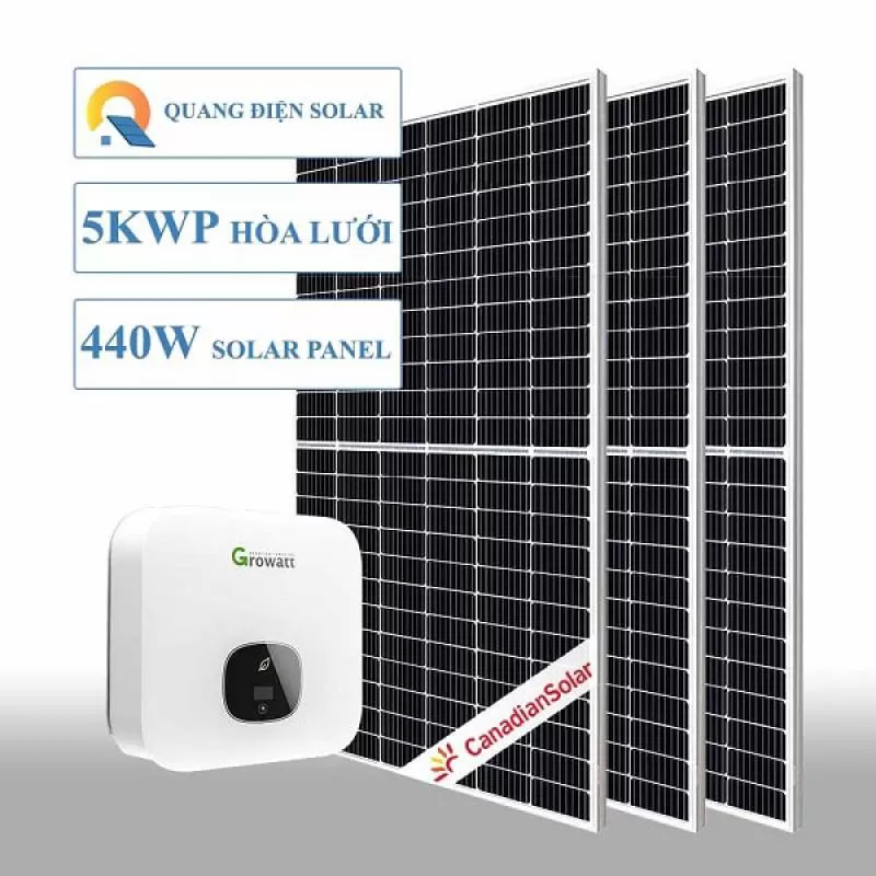 Hệ thống điện năng lượng mặt trời hoà lưới 5 kwp, phù hợp cho các hộ gia đình có nhu cầu dùng điện 1 - 1.5 triệu đồng/tháng, tương đương với 350 -500 kwh/tháng