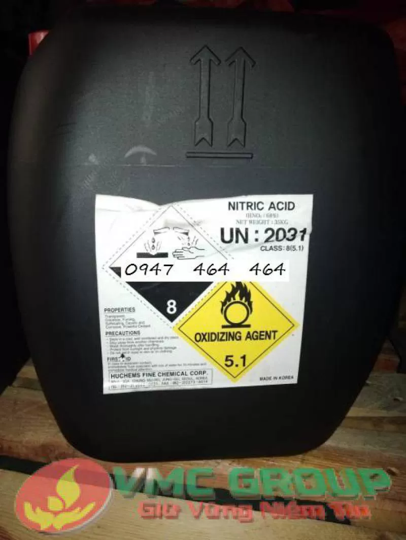 ACID NITRIC là một hợp chất vô cơ có công thức hóa học HNO3. Axit nitric tinh khiết là chất lỏng không màu, bốc khói mạnh trong không khí ẩm.Shipping/Vận chuyển