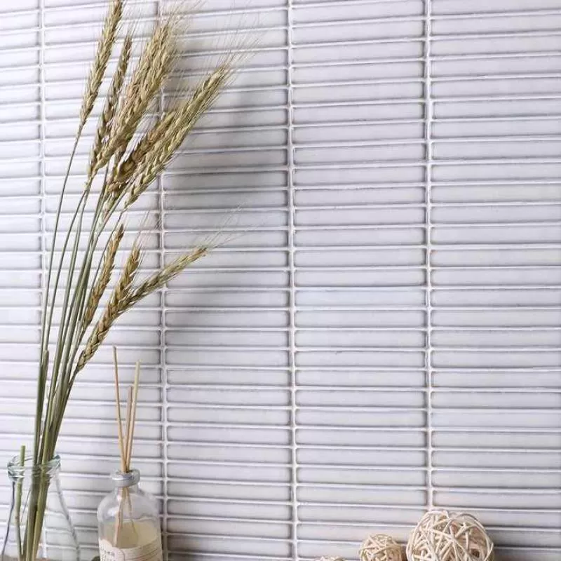 Hot Sale Premium Interior Bathroom Kitchen Backsplash Wall Glazed Stackbond Glossy Ceramic White Strip Kitkat Finger Mosaic Tile
