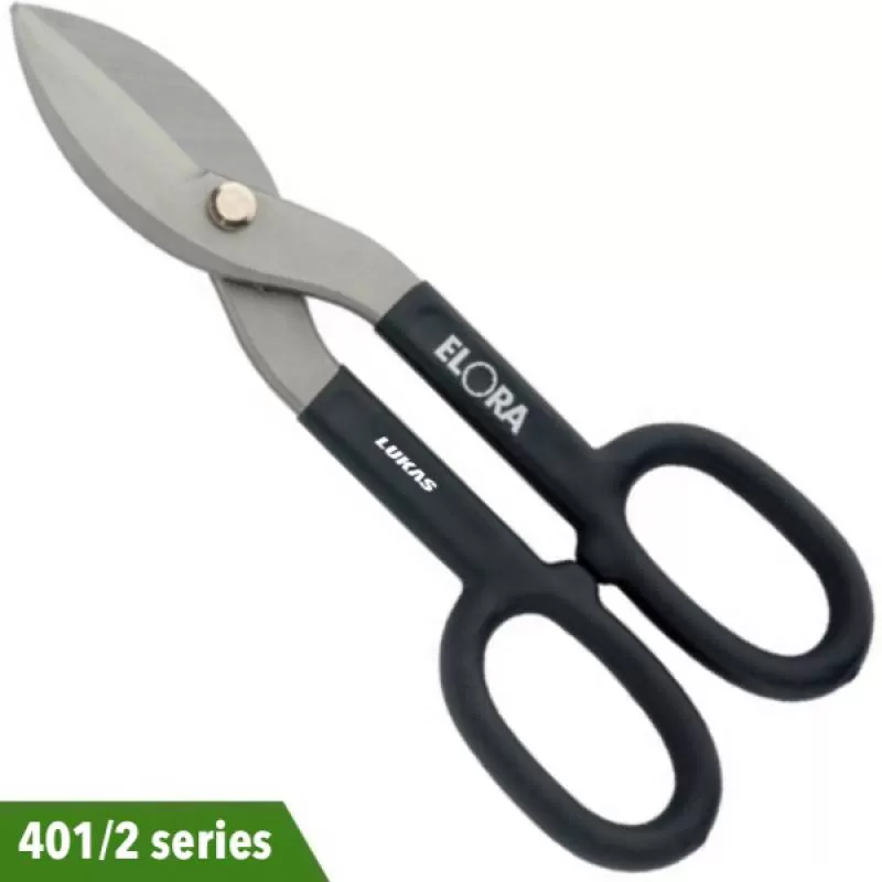 Kéo cắt tôn cán bọc nhựa 401/2 series Elora Germany. Có 5 size 175, 200, 250, 300 và 350mm. Cắt tôn, thép tấm, shim lá, vải bố, da thuộc, amiang, cao su.