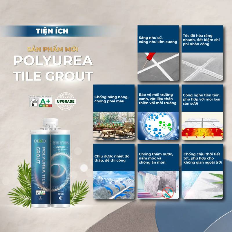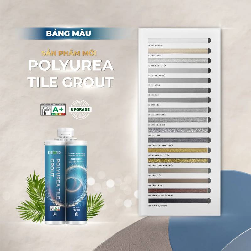 Demex Polyure Tile Grout là dòng Keo chà ron gốc Polyurea cao cấp chuyên dụng cho các khu vực ngoài trời. Sản phẩm có nhiều ưu điểm vượt trội, thay thế tốt cho các loại bột chà ron thông thường.