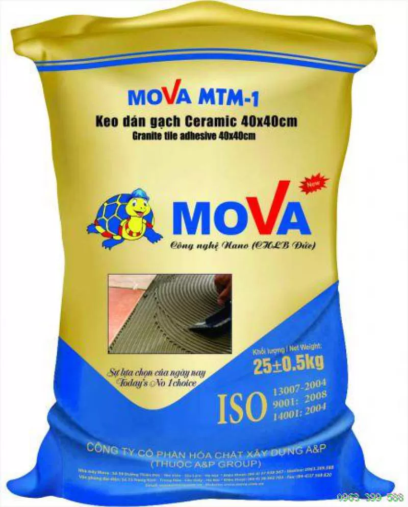 Keo dán gạch Mova MTM-1 là loại vữa keo trộn sẵn, có độ bám dính tốt, cho phép thi công cực nhanh và không gây ố màu gạch.Shipping/Vận chuyển