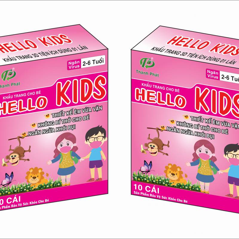 - Cấu tạo khẩu trang Hello Kids được làm bằng 3 lớp vải dày, trong đó sử dụng vải SMS cao cấp đầu tiên tại Việt Nam. Với tính năng lọc bụi, lọc khuẩn, ngăn ngừa khói bụi cho bé khi đeo.