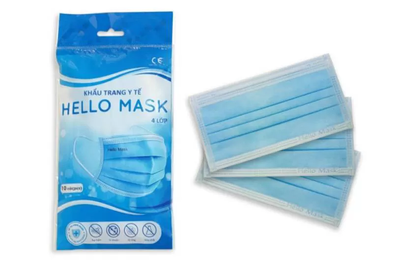 KHẨU TRANG Y TẾ HELLO ( 4 LỚP - DẠNG TÚI 10 CÁI )