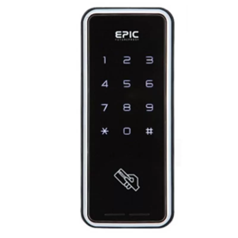 Khóa thẻ từ Epic Touch H Kiểu khóa: Khóa không tay cầm, chốt dạng móc, đặc biệt phù hợp với cửa lùa, cửa trượt Mở khóa bằng thẻ từ, mã số