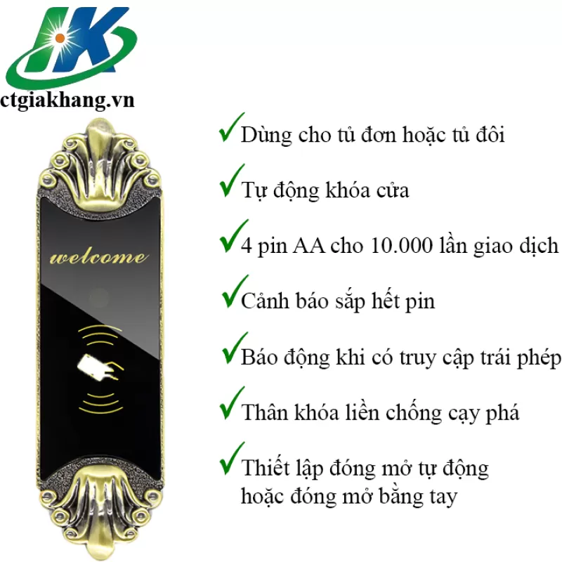 Khóa khách sạn, khóa thẻ từ dùng phần mềm quản lý khép kín HK LOCK 204A