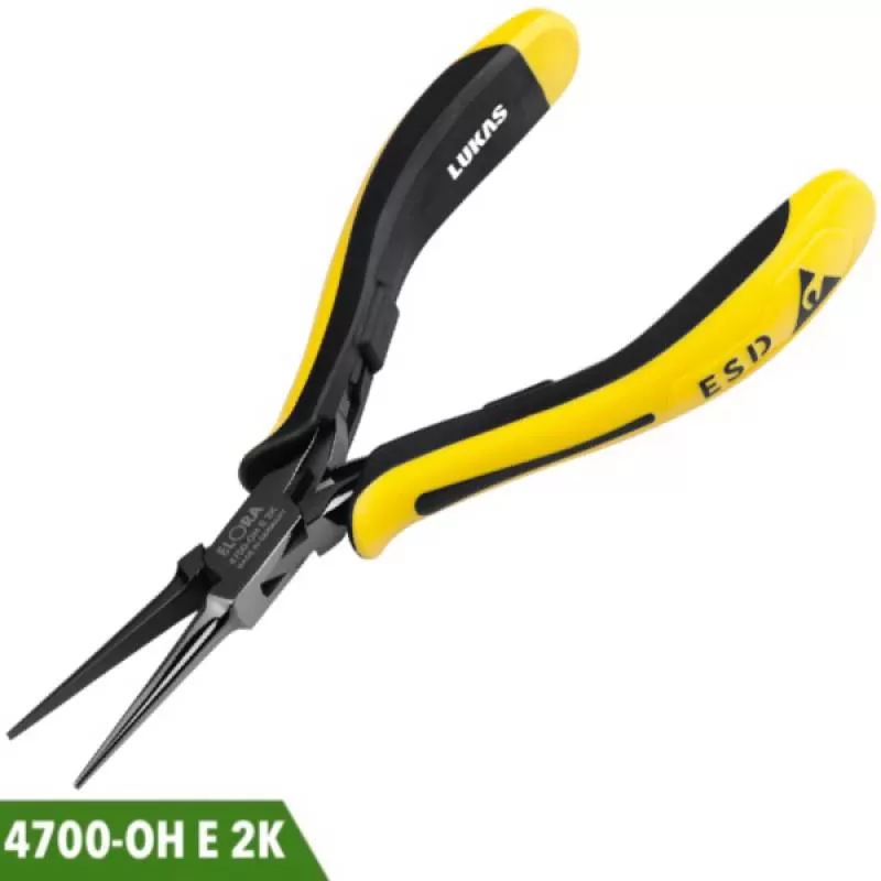 Kìm mỏ nhọn ESD 150mm đầu thẳng chống tĩnh điện 4700-OHE2K Elora Germany. Mũi dài 37mm, sản xuất tại Đức. Kìm tĩnh điện ESD kẹp linh kiện điện tử.