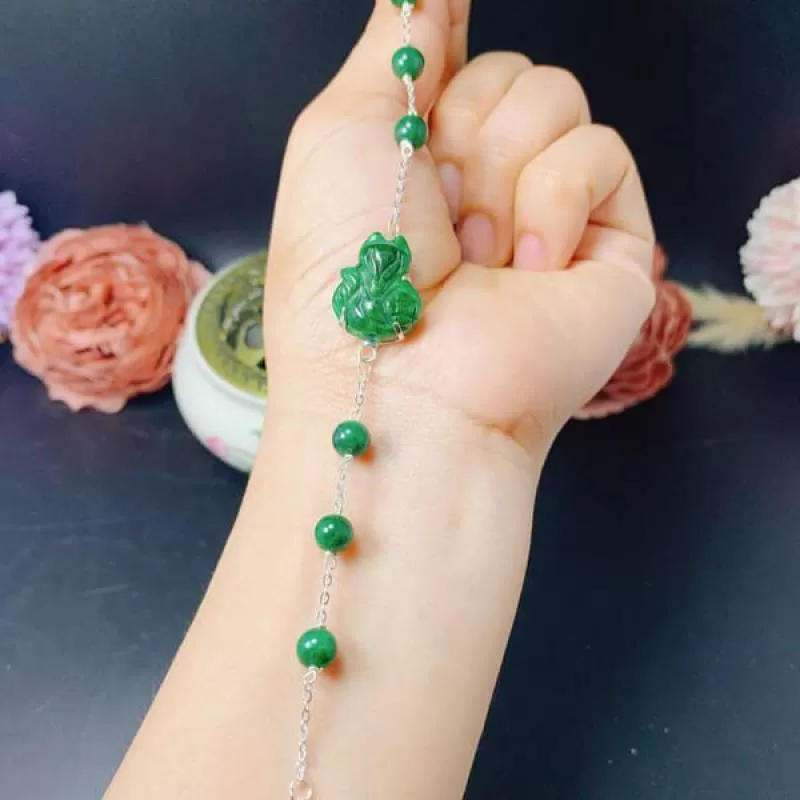 Lắc tay Bạc Hồ Ly Ngọc Sơn Thủy
