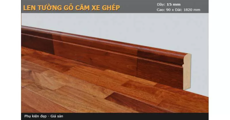 Len Tường Căm Xe Ghép - Len Tường căm xe : cây gô căm xe là loại gỗ cứng có nhựa trong thân cây chống mối mọi xâm nhậpLen chân tường được sản xuất từ cây gỗ căm xe tự nhiênQui cách: Chiề