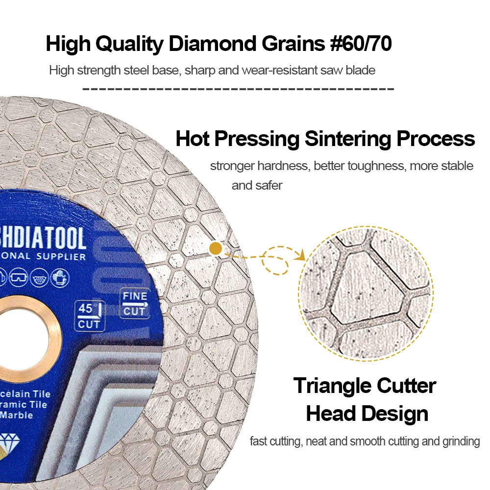 SHDIATOOL 1pc 5Inch Double-sided Diamond Cutting Grinding Saw Blade Triangle Design 125mm Diamond Disc Tile Quartz Marble Cutter