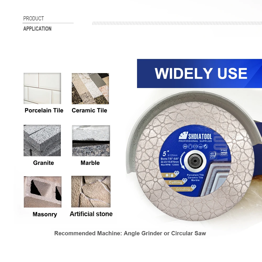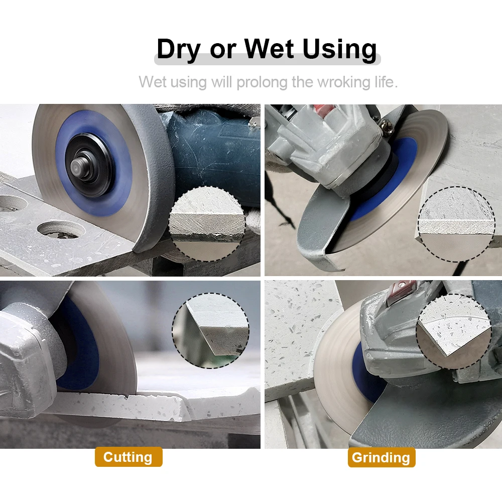 - Ứng dụng: Cắt khô hoặc ướt gạch ceramic, đá marble, granite, đá nhân tạo và vật liệu tương tự