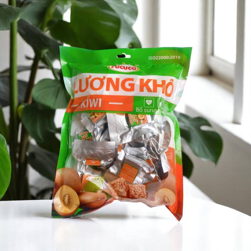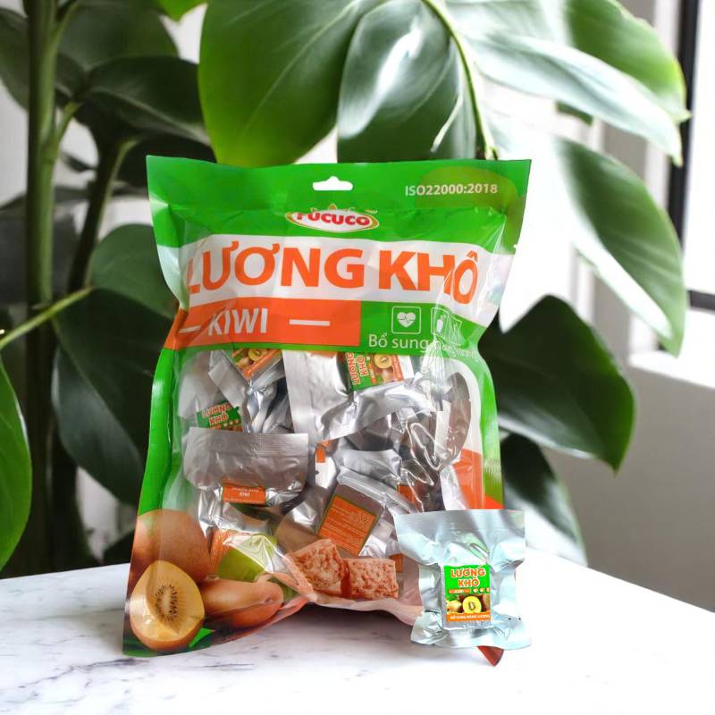 Lương khô kiwi Fucuco là sản phẩm mới thuộc dòng lương khô ăn liền của Công ty Phú Cường (Fucuco), kết hợp giữa vị kiwi thanh mát và dinh dưỡng từ ngũ cốc nén. Không chỉ gọn nhẹ, tiện lợi, mà còn hấp dẫn nhờ hương vị tự nhiên từ kiwi – loại quả giàu vitamin C và chất xơ.