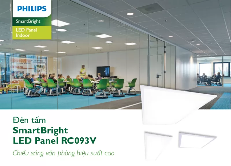 Máng đèn âm trần Led Panel Philips SmartBright 2.0 troffer RC093V LED36S/865 W600L600 giải pháp chiếu sáng tiết kiệm đến 67% chi phí, tuổi thọ cao hơn 2.5 lần.