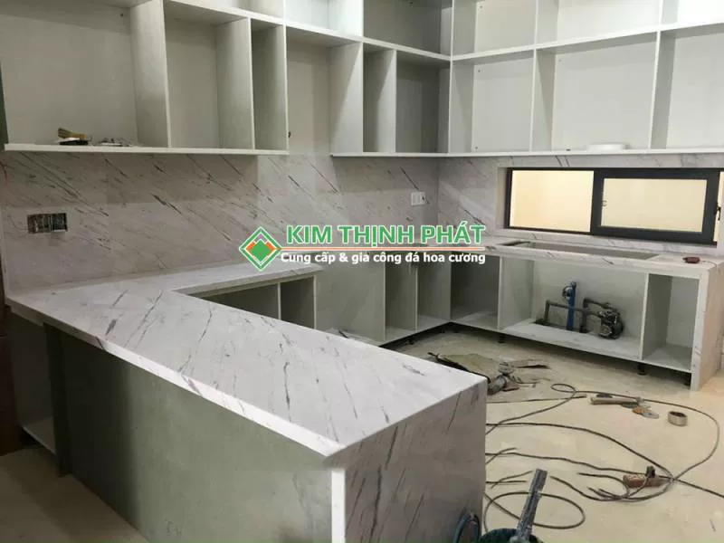 Mẫu bàn bếp đá Trắng Polaris