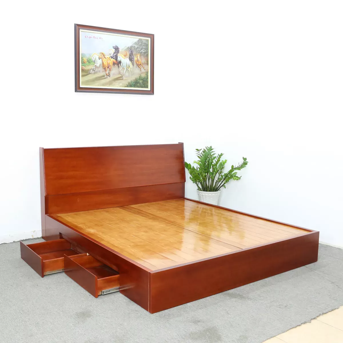 Giường Ngủ Cao Cấp Nhập Khẩu Gỗ Công Nghiệp MFC Chân Cao Có Hộc Tiện Dụng