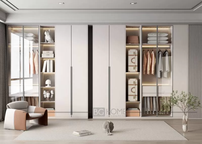 Thiết kế cánh kính tinh tế không chỉ tạo cảm giác mở rộng không gian mà còn giúp bạn dễ dàng quản lý và trưng bày các loại trang phục một cách ngăn nắp. Tủ Áo BG-TA-007 Cánh Kính không chỉ là nơi lý tưởng để bảo quản trang phục mà còn là điểm nhấn thẩm mỹ trong phòng ngủ hoặc phòng thay đồ .