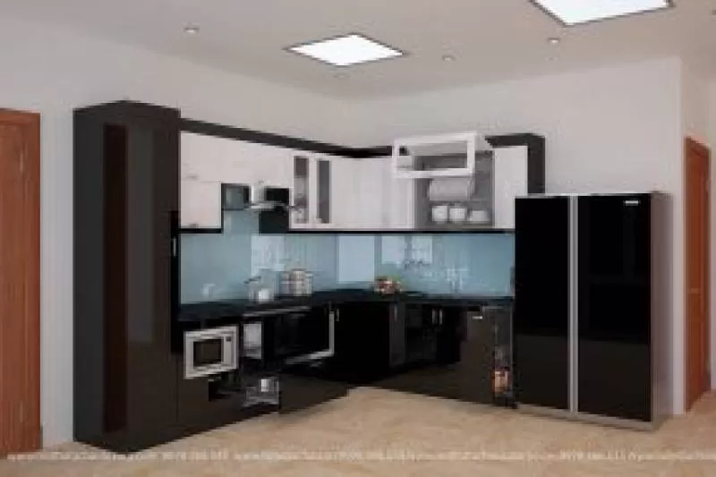 Tủ trên chữ I, tủ dưới chữ L có tủ kho