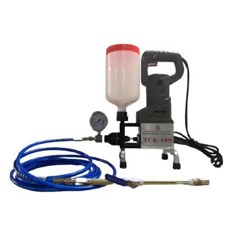 [ Đơn giá chưa thuế VAT 8% ] Máy bơm keo Pu - Epoxy TCK-499 là dòng máy bơm áp lực cao dùng để bơm sản phẩm keo Pu foam trương nở hoặc keo Epoxy. Dùng trong quá trình chống thấm của các công trình như: tầng hầm, bể nước, vết nứt bê tông, trần, tường; xử lý chống thấm hố thang máy và các hạng mục xây dựng cần được xử lý chống thấm và nứt khác.