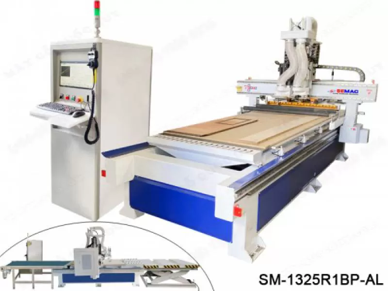 Máy CNC gia công cắt khoan ván SM-1325R1BP-AL mang thương hiệu Semac được thiết kế thông minh - tiện dụng - dễ sử dụng. Hệ thống điều khiển và linh kiện của máy nổi tiếng từ Đài Loan - Đức, mang lại hiệu quả cao trong quá trình gia công.Shipping/Vận chuyển