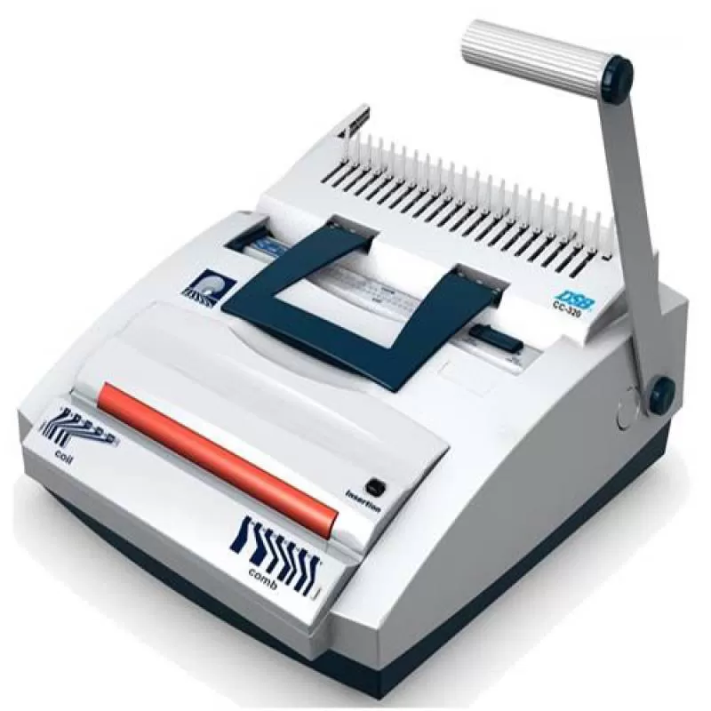 Máy đóng lò xo nhựa DSB CC-320 Đóng 19/21 lỗ : 20 tờ / giấy 80gsm Đóng 44/46 lỗ : 12 tờ / giấy 80gsm Khổ giấy : A4, LTR Công nghệ Đức, chính...