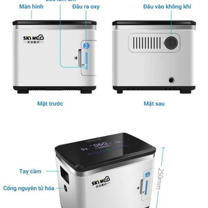 MÁY OXY TRỢ THỞ CHÂU ÂU SKYMED 7 lít – 93% oxy tinh khiết – Máy oxy hỗ trợ thở tại nhà
