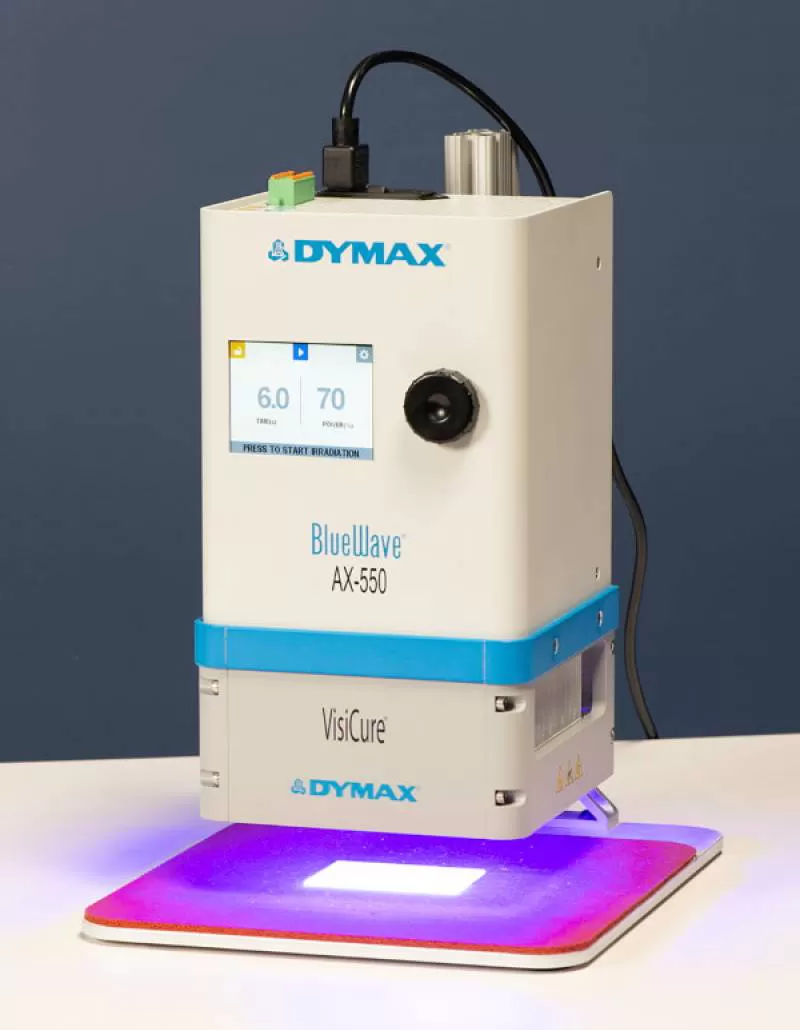 Máy sấy UV Dymax BlueWave AX-550 là một hệ thống đi liền nhau sấy bao gốm một bộ điều khiển, một đèn phát sáng, một nguồn điện. Thiết kế máy với bộ điều khiển nhỏ gọn cùng với bàn đạp giúp người sử dụng dễ dàng gia công sấy khô bằng tay và tích hợp vào hệ thống sấy ban đầu. Đầu chiếu của đèn có thể tháo rời và hệ thống có thể được nâng cấp bởi người dùng, dễ dàng chuyển đổi sang dải bước sóng lớn hơn với năng lượng sấy khô cũng lớn hơn.