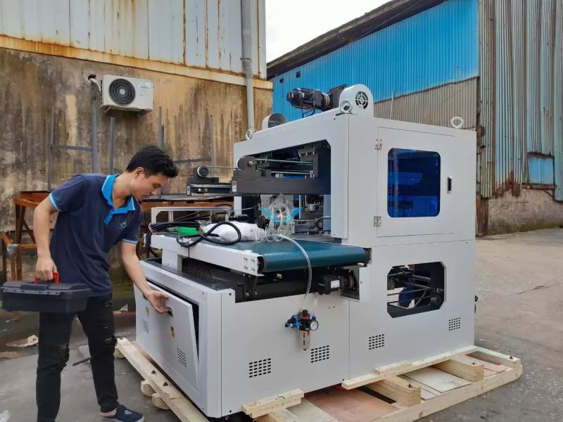 Máy thụt hộp bán tự động là dòng máy mới nhất tự động kéo hộp vào phần thụt với độ chính xác cao thay vì công nhân đặt tay.Shipping/Vận chuyển