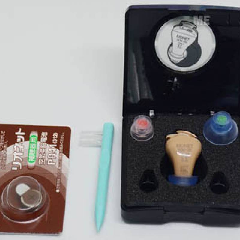 Máy trợ thính bao gồm: 01 máy, 03 cỡ lót tai cho người dùng khác nhau, 01 pin PR41 và 01 bàn chải để làm vệ sinh máy, 01 hộp nhựa đựng máy.