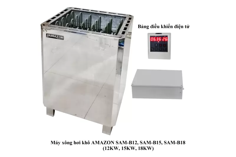 MÁY XÔNG KHÔ SAUNA AMAZON (SAM-B15) Xông hơi có nhiều lợi ích trong phục hồi sức khỏe của con người, là biện pháp trị liệu không dùng thuốc, được cả thế giới áp dụng.Kinh nghiệm dân gian lâu đời cũng đã dùng nồi xông để chữa bệnh, nhất là để trị cảm cúm. Để đáp ứng được nhu cầu trên, Công ty Cổ phần Đầu tư SX và XNK Toàn Phát xin giới thiệu sản phẩm Máy xông khô Sauna AMAZON SAM-B15 Đặc điểm: Máy xông khô Sauna lắp đặt dựa trên công suất máy tương ứng với diện tích của phòng xông. Một số đặc điểm nổi bật của máy xông hơi khô AMAZON: Linh kiện của Nhật Bản và lắp ráp tại Việt Nam nên giá thành sản phẩm là tốt nhất trên thị trường Hệ thống báo lỗi tự động. Điều khiển nhiệt độ phòng xông. Cài đặt thời gianShipping/Vận chuyển