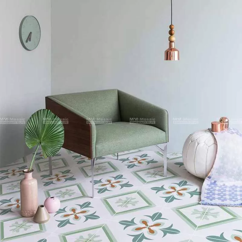 Moroccan decorative ceramic floor tile factories in china green printed decorating encaustic tiles